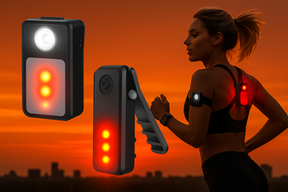 Clip-On Safety Lights ideal for Runners Safety - Multi function with Red & White solid/flash options.